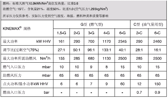 以下是燃烧机参数: